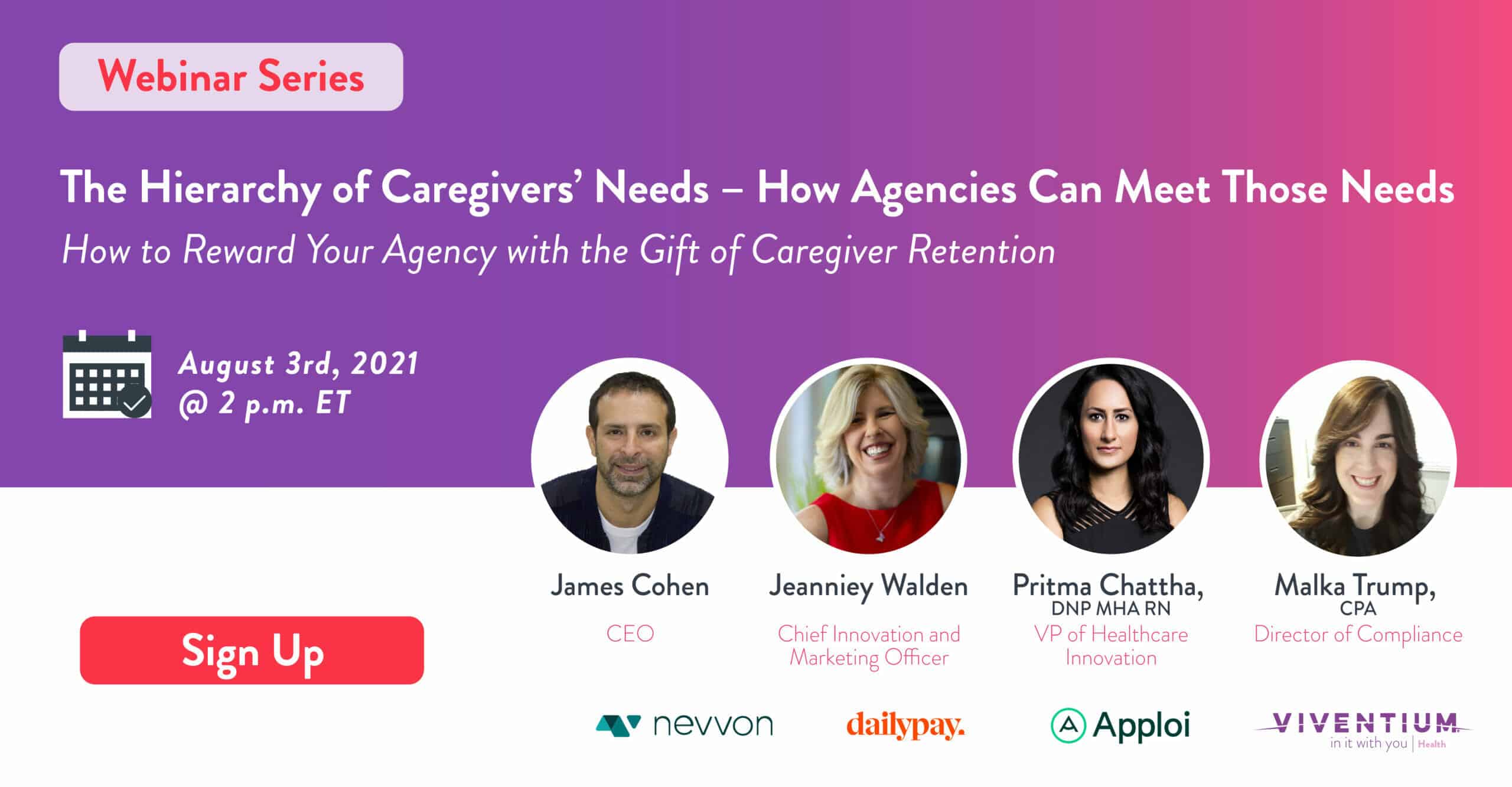 In this webinar, you’ll hear from a power panel of experts – Viventium’s Director of Compliance, Malka Trump; Apploi’s VP of Healthcare Innovation, Pritma Chattha, DNP, MHA, RN; Nevvon's CEO and Co-Founder, James Cohen; and DailyPay’s Chief Innovation and Marketing Officer, Jeanniey Walden – and will walk away understanding: